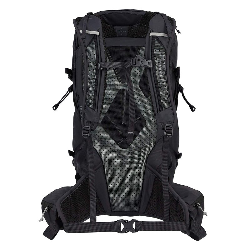 Für einen optimalen Sitz ist die stabile ABS-Rückenplatte anatomisch vorgeformt. Dadurch verteilt sich nicht nur das Gewicht des Rucksacks besser, unangenehme Druckstellen durch Ausrüstung im Rucksack werden ebenfalls vermieden. Auch die verstellbare Rückenlänge trägt zu einer optimalen und körpernahen Passform bei. Und damit der Schweiß in jeder Situation bestmöglich entweichen kann, sind der Kontaktrücken, die Schultergurte und die Hüftflossen mit einem perforierten 3D-Schaum und Meshbezug ausgestattet. So genießt du großartigen Tragekomfort auf dem Trail und am Klettersteig, egal ob du sportlich oder gemütlich unterwegs bist.