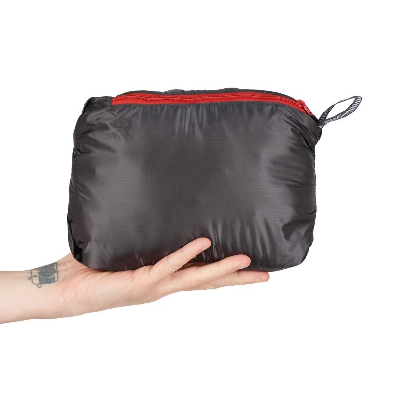 Trotz der hohen Isolationsfähigkeiten verfügt die Jacke über ein sehr kleines Packmaß bei einem grandiosen Wärme-Gewichts-Verhältnis (320 g/Gr. M). So lässt sie sich in einer der beiden RV-Seitentaschen verstauen und komprimiert zum Beispiel am Klettergurt befestigen. Beim Tragen sorgen teilelastische Ärmelbündchen sowie der Schnürzug im Saum für optimalen Sitz.