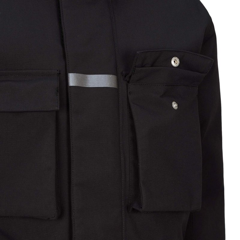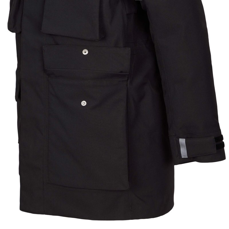 Den hohen Komfort bei niedrigen Gradzahlen optimieren der hohe Stehkragen im Zusammenspiel mit der ebenfalls warm gefütterten Kapuze. Auch am Front-Reißverschluss werden dank der Windschutzleiste kalte Böen und Nässe abgewehrt. Die Ärmelabschlüsse sind mit Klettverschluss versehen, damit sie gut abschließen und nicht so schnell verrutschen. Ein Schnürzug an der Taille verbessert den Sitz ebenfalls.