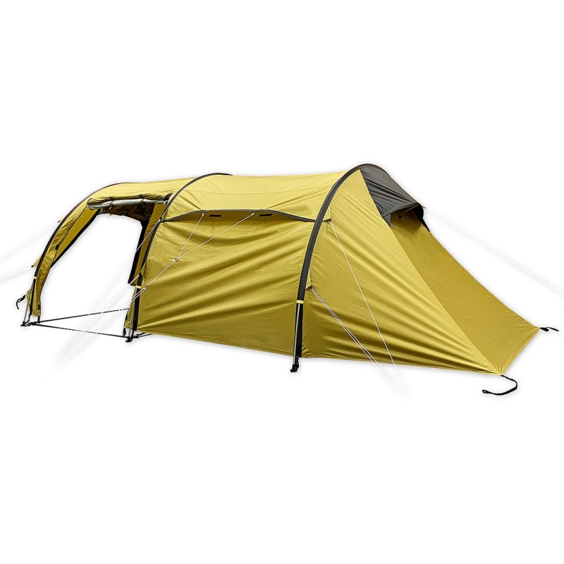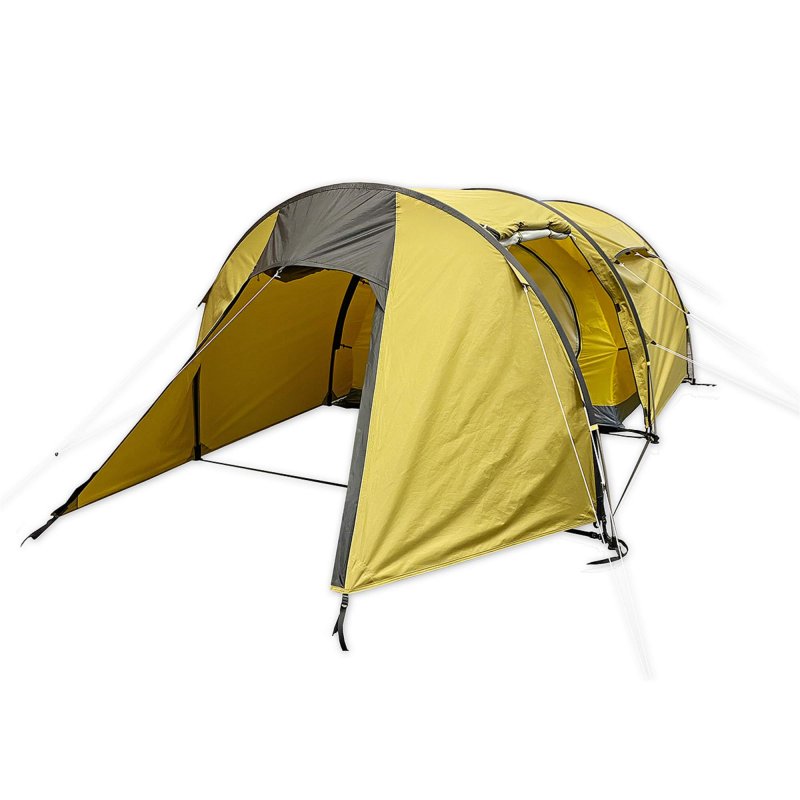 Ob ihr zu dritt unterwegs seid oder einfach zu zweit viel Platz braucht, hier lässt sich viel Ausrüstung bequem verstauen, ohne dass Chaos herrscht. Die Tunnelform mit ihren steilen Seitenwänden sorgt dabei für ein einfaches Aufstellen sowie eine optimale Platzausnutzung. Die Apsis ist ebenfalls enorm geräumig, sodass Küchenutensilien oder große Rucksäcke gut Platz finden. Für große Personen ist die lange Liegefläche optimal.
