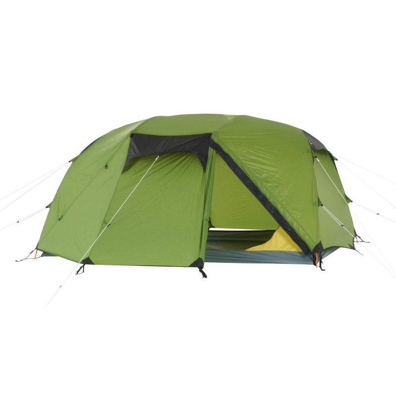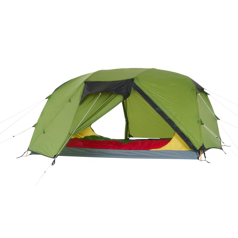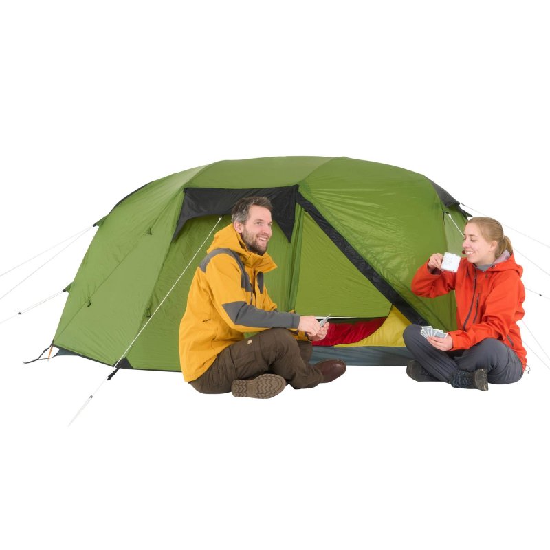 Bist du unterwegs und es herrscht schlechtes Wetter? Oder möchtest du einfach einen Tag an einem schönen Ort verbringen, ohne dabei in einem Zelt eingeengt zu sein? Dann ist das Hamra Light in der HC-Version genau das Richtige für dich. Durch das Gestänge mit hoch angesetzten Kreuzpunkten wird der Fuß- und Kopfbereich weit aufgespannt, was zu steilen Seitenwänden führt. In dieser Version kommen zwei zusätzliche Querbögen im Kuppelbereich zum Einsatz, die das Innenzelt weiter aufspannen und erheblich mehr Platz im Kopfbereich schaffen. So bietet das Innenzelt mehr Bewegungsfreiheit als andere Modelle. Für eine ausreichende Belüftung sorgen zwei große Hochlüfter an den Querseiten sowie zwei kleinere Lüfter an den Apsiden. Die Türen des Innenzelts bestehen aus großflächigem Mesh-Material, die bei Bedarf teilweise oder vollständig abgedeckt werden können.