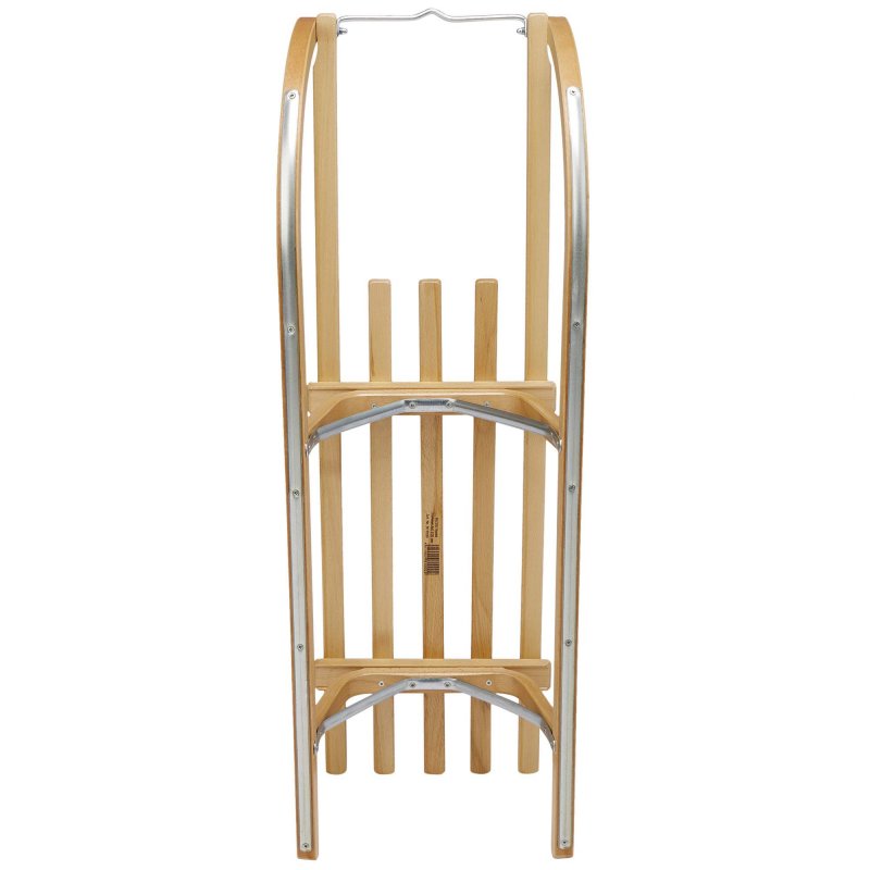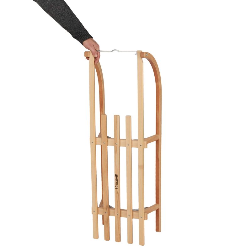 Klassischer Holzschlitten, der sich bereits seit Generationen bewährt. Gefertigt aus verleimtem und geschraubtem Buchenholz. Großer Rodelspaß ist also garantiert.