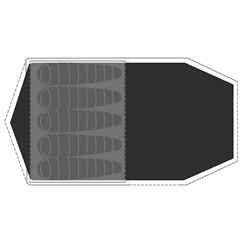 Die Bodenplane ist passend für das gesamte Zelt, einschließlich der Apsis, und schützt den Zeltboden vor Schmutz, Beschädigungen und kondensierender Bodenfeuchtigkeit.
