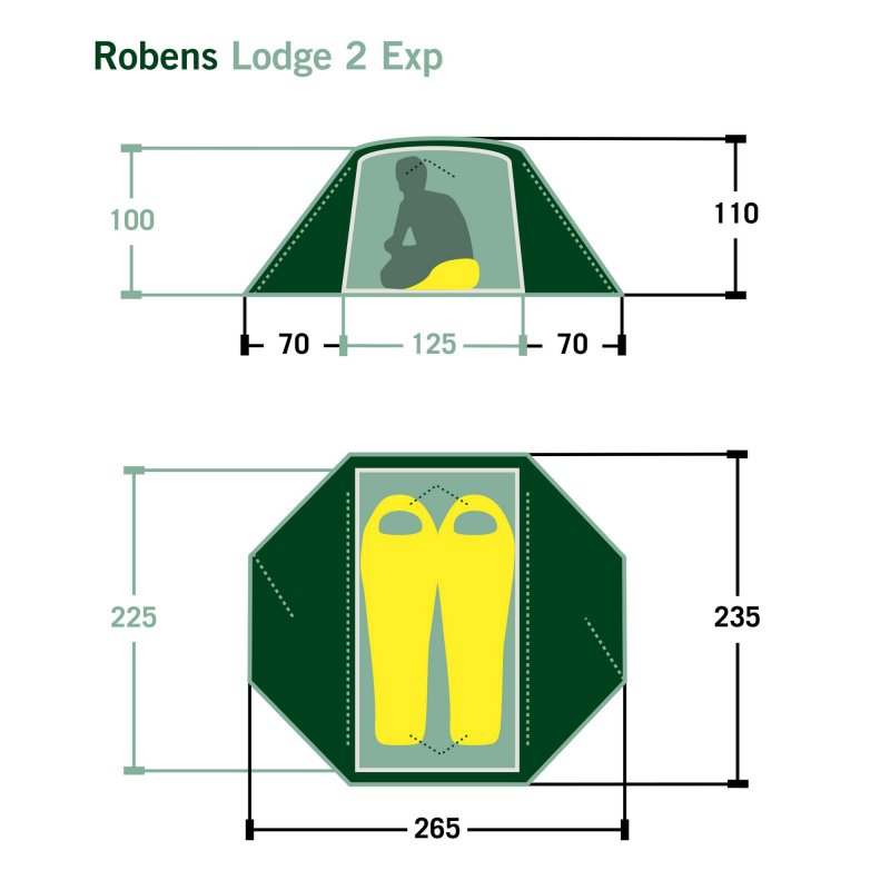 Das Lodge 2 EXP lässt sich dank seiner klassischen Kuppelform leicht aufbauen. Der Querfirst sorgt für viel Platz und Kopffreiheit im Innenraum. Bei milder Witterung kannst du das Außenzelt im Packbeutel belassen und im gut belüfteten Innenzelt schlafen. Die in den Eingängen integrierten Moskitonetze lassen sich bei Bedarf für mehr Privatsphäre abdecken.