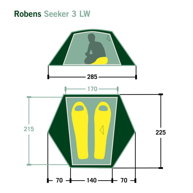 Das Seeker 3 LW überzeugt mit durchdachten Details. Besonders die Belüftung wurde gezielt optimiert – denn in heißen Sommernächten kann sie kaum gut genug sein. Robens setzt dabei standardmäßig auf zwei Hochlüfter sowie ein hochgezogenes Außenzelt. Im Innenzelt sorgt großflächiges Mesh-Material für eine effektive Luftzirkulation.