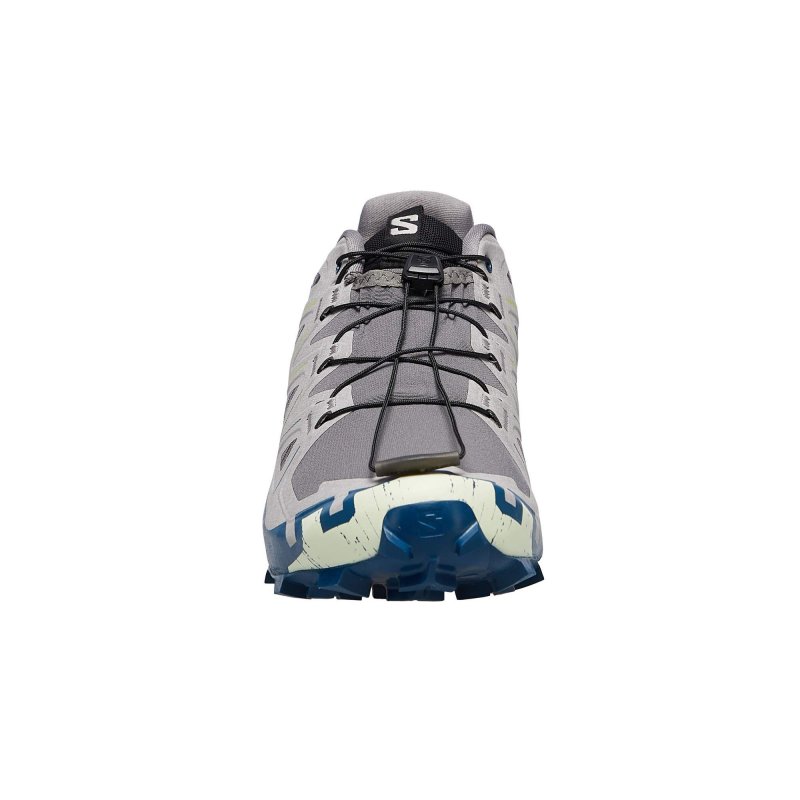 Die Zunge des funktionalen Trailrunningschuhs ist mit elastischem Netzgewebe versehen. Darunter kannst du bei Läufen die Bänder des Schnellschnürsystems "verstecken", damit du nicht drüber stolpern kannst. Außerdem hat der Schuh dadurch und durch die weich gepolsterte Zunge, einen Schlupfschuh-ähnlichen Charakter.