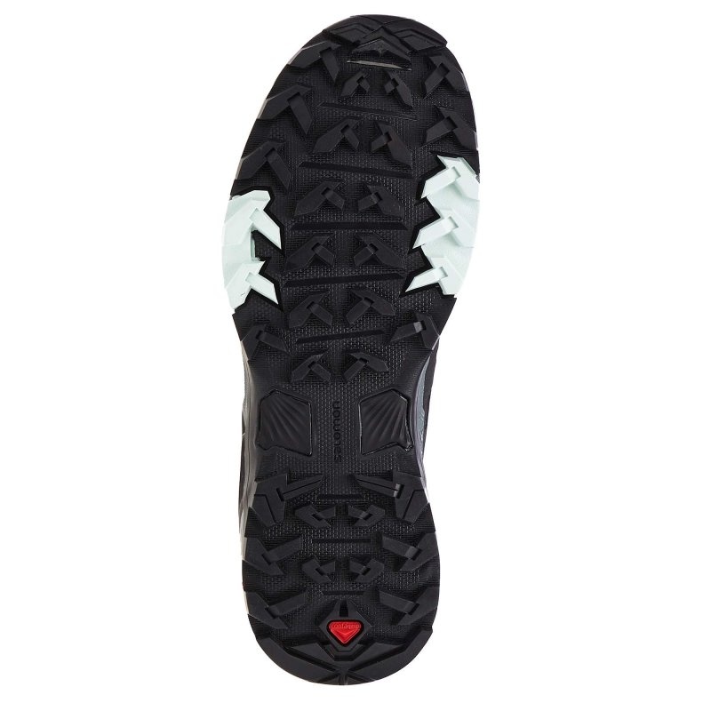 Zwei verschiedene, sorgfältig platzierte Gummisorten verleihen der Sohle viel Griffigkeit. Ein besonders ausgeprägtes Stollenmuster im Fersenbereich krallt sich in den Untergrund, um dir auch bei höherem Tempo viel Kontrolle zu bieten.