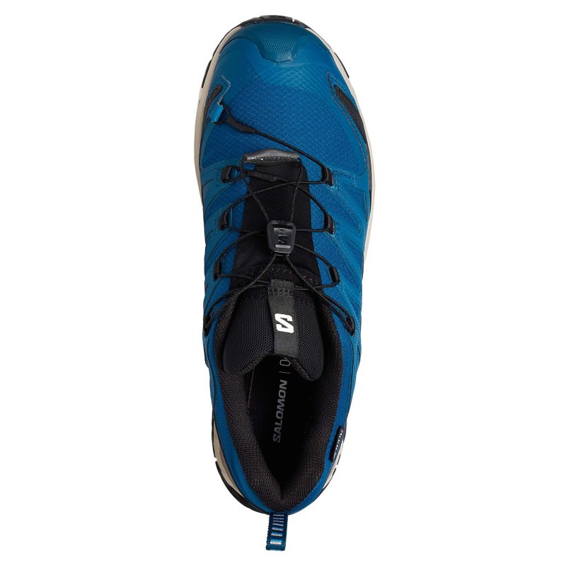 Das ist der XA Pro 3D V9 von Salomon. Aus schnell trocknendem, luftigem Mesh und stabilisierendem TPU-Verstärkungen. Innen leicht gepolstert und mit synthetischem Futter ausgestattet. Für angenehmes Auftreten und gut klimatisierte Füße. Die verdeckt eingearbeitete Zunge verhindert das Eindringen störender Kleinstteilchen. Übrigens werden deine Füße in dieser Version auch vor eindringendem Wasser geschützt. Eine zum Einsatz kommende Gore-Tex Membran bietet Schutz bei Regen und Feuchtigkeit und sorgt dank hochgradiger Atmungsaktivität auch für ein ausgeglichenes Trageklima.