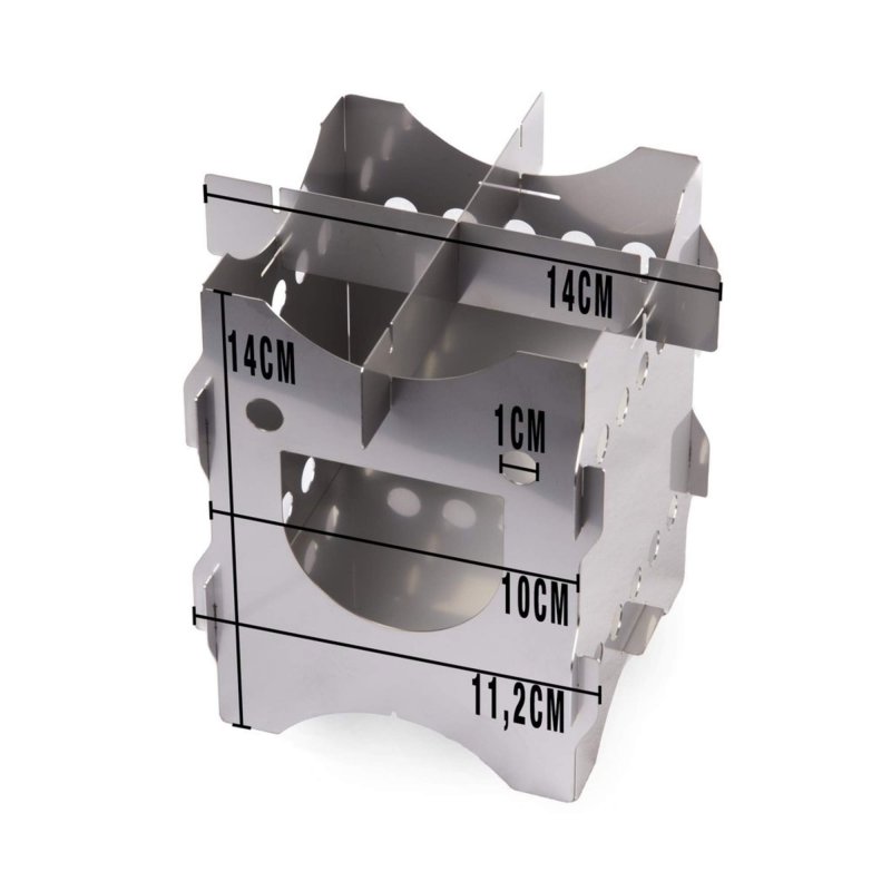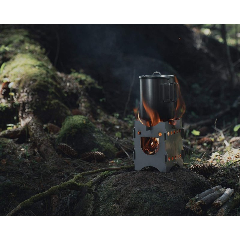 Mit dem reisefreundlichen Packmaß kannst du den Holzvergaser problemlos in der Jackentasche oder einer Ecke deines Rucksacks verstauen. Und da er so unkompliziert ist, musst du nicht einmal Brennstoff mit dir führen. Die Brennkammer ist 10 x 10 x 9,5 cm groß und besitzt an den Seiten Luftöffnungen, um den Kamineffekt zu verbessern. Einmal angefeuert, brennt er mit Zweigen bis zu Fingerdicke am besten.