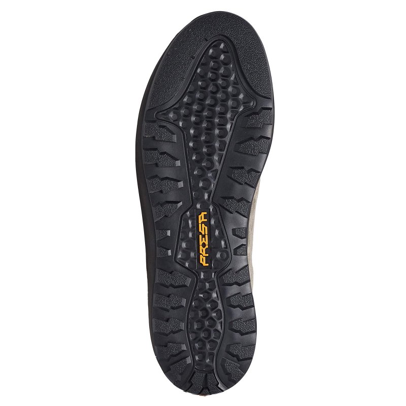 Die Laufsohle vereint gute Dämpfungseigenschaften mit angemessener Stabilität und bietet ein Profil für befestigte Wege und unebenes, felsiges Gelände. Die breite Auftrittsfläche sorgt dabei für sicheres Auftreten und optimale Bodenführung.
