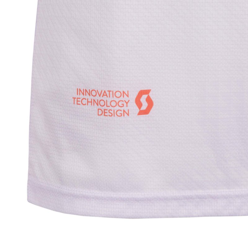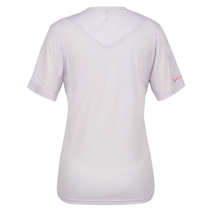 Bike- und MTB-Shirt für warme, sommerliche Tage; ein helles Fahrrad-Shirt mit einem Hauch Violett. Das Tee W's Trail Flow SS ist Teil der Scott Re-Source-Serie und zu 100% aus Recycling-Polyester.