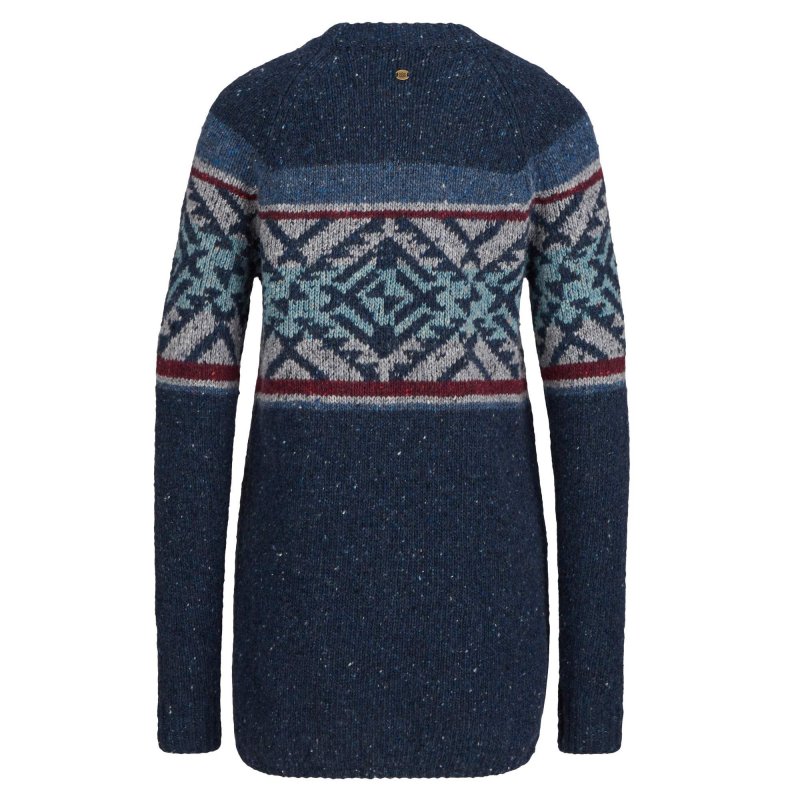 Neben dem langen, modernen Schnitt sorgt auch das hübsche, nepalesisch inspirierte Strickmuster für das gewisse optische Extra. Durch die recht lockere Passform und die stark dehnbare Strickstruktur trägt sich der Pullover sehr bequem. Perfekt für lange Reisen oder gemütliche Abende vor dem Kamin!