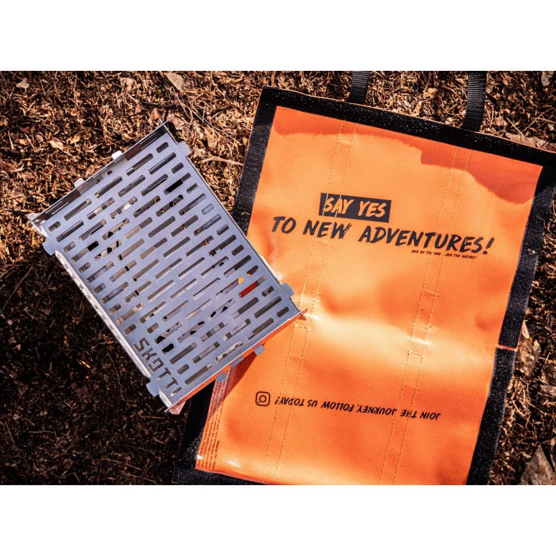 Durch sein flaches Packmaß kann der Mini hervorragend im Rucksack transportiert werden. Das Stecksystem ist schnell zusammengebaut, sodass du direkt ein Feuer entfachen kannst. Dazu eignen sich fingerdicke Äste, trockene Rinde, Kiefernzapfen oder gespaltenes Holz. Für einfaches Nachlegen kann eine kurzes Seitenteil oder der Grillrost entfernt werden.