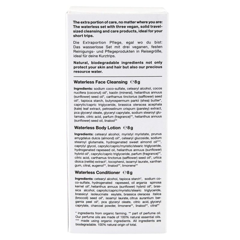 Du möchtest auch bei deinen Reiseseifen auf Nachhaltigkeit achten? Dann bist du hier richtig! Die drei wasserlosen Seifen bieten darüber hinaus auch eine Rundumpflege. Alle Seifen sind biologisch abbaubar, in Deutschland hergestellt und vegan. Sie können für alle Haar- und Hauttypen eingesetzt werden - auch wenn für empfindliche Typen. Durch den Verzicht auf Wasserzusatz sind sie mit je 8 g auch besonders leicht im Gepäck.
