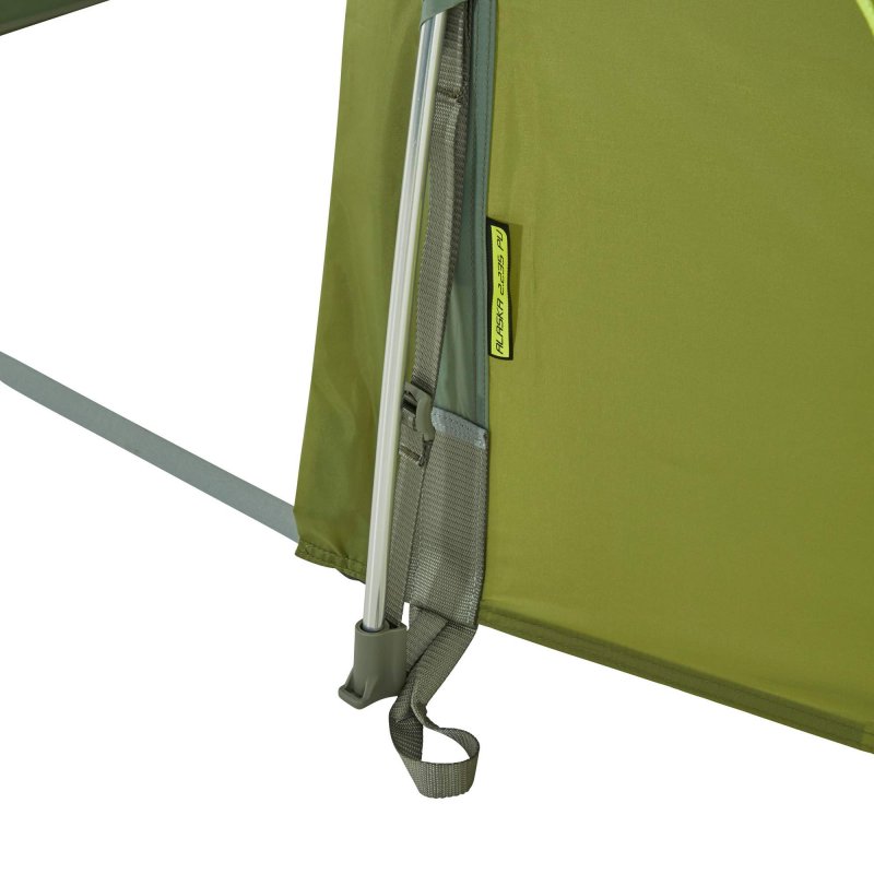 Durch das besonders lang geschnittene Innenzelt von 235 cm bietet das Alaska 2.235 auch Reisenden mit großer Körperlänge ausreichend Platz. So stößt niemand mit dem Fußbereich des Schlafsacks an das Außenzelt. Es unterscheidet sich von Tatonkas Arctis 2.235 durch die deutlich längere Apsis und den zusätzlichen, seitlichen Eingang. Dadurch steht wesentlich mehr Platz für Ausrüstung zur Verfügung.