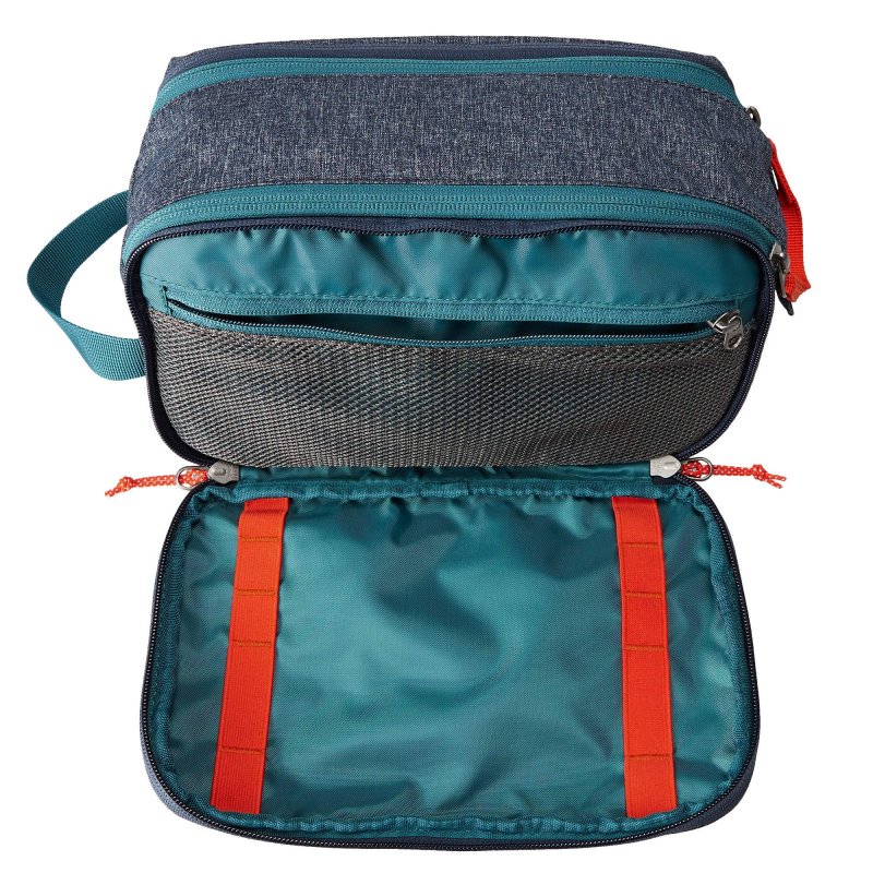 Die große Cosmetic Douple Zip Pouch bietet viel Platz für deine Hygiene- und Kosmetikartikel. Für eine optimale Übersicht lässt sich der Reißverschluss komplett öffnen.