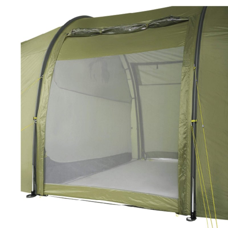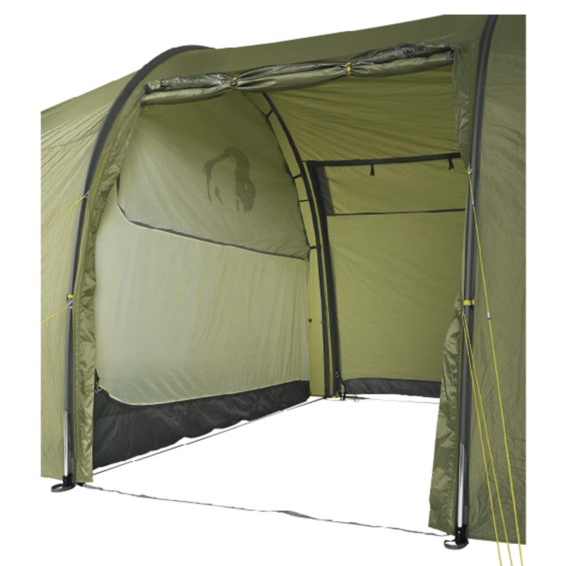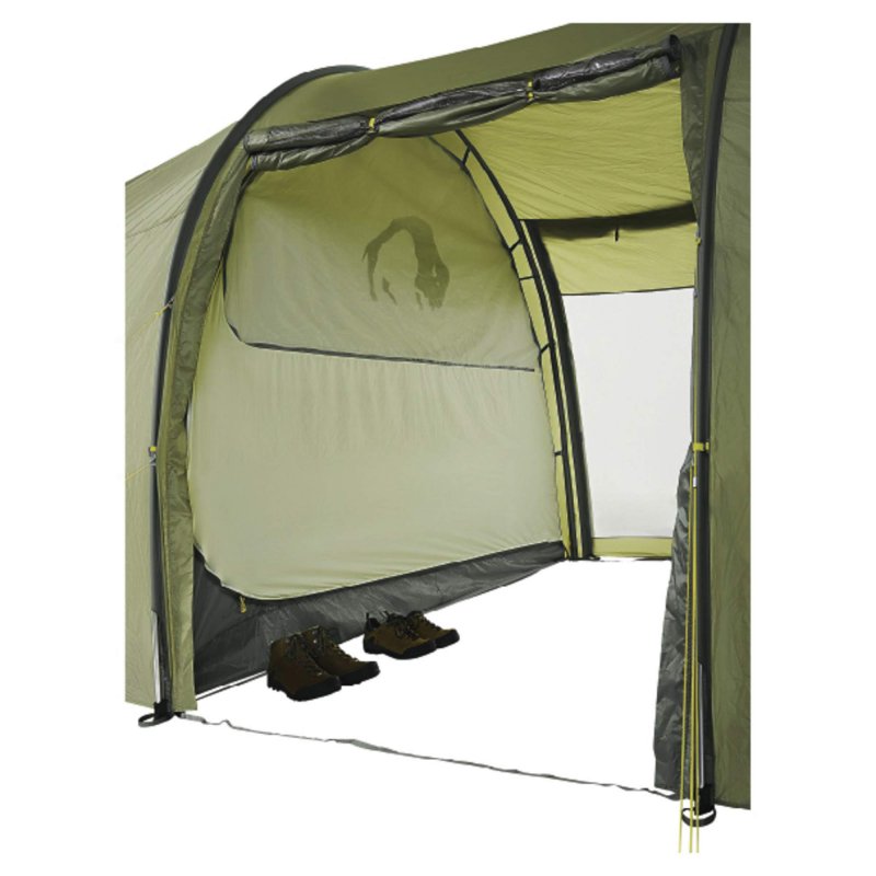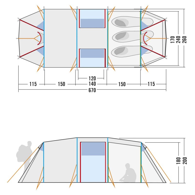 Das Family Trek II ist ein Familienzelt mit Stehhöhe für drei Personen mit extra-großer Apsis. Mit einer Gesamtlänge von 6,70 Meter und der stehhohen Konstruktion ist das Familien-Tunnelzelt Family Trek II ein echtes Raumwunder. Es bietet eine geräumige Schlafkabine für drei Personen und einen äußerst großzügig bemessenen Vorraum, dazu zwei zentrale, gegenüberliegende Eingänge sowie Eingänge an beiden Stirnseiten. Für genügend Licht im Inneren des Zeltes sorgen Fenster in den Seiteneingängen und an den Stirnseiten.