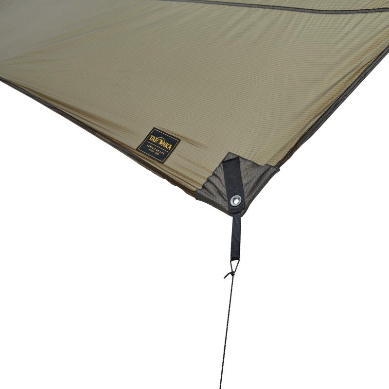 Das leichte Tarp mit Minimalschnitt ist klein im Packmaß und daher optimal für Trekkingtouren geeignet. Es lässt sich gut mit Trekkingstöcken, Tarpstangen oder nur mit Schnüren abspannen.