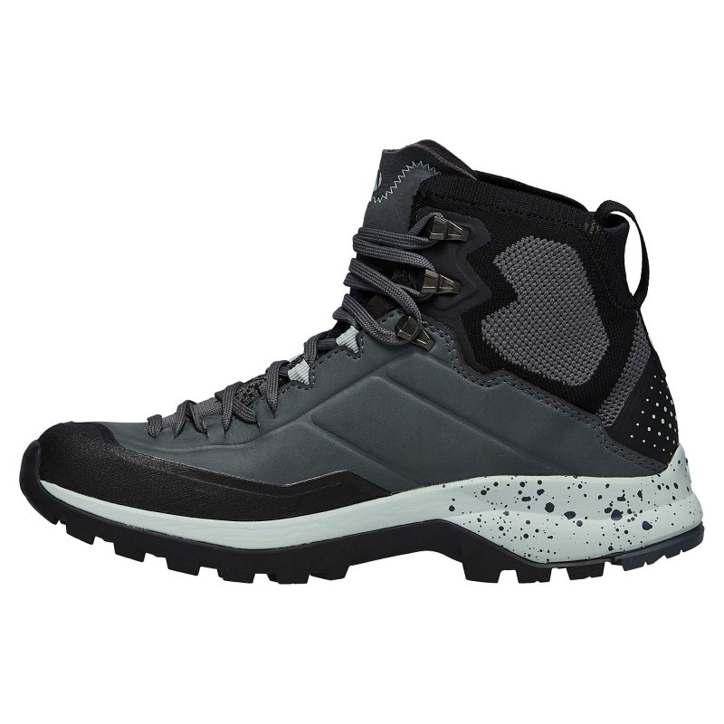 Beim Obermaterial kommen somit ausschließlich synthetische Materialien zum Einsatz. Genauer gesagt veganes microbuck Kunstleder und vor allem im Schaft- aber auch im Zungenbereich flexibles Mesh-Gewebe. Ersteres sorgt, genau wie tierisches Leder für eine hohe Haltbarkeit auch in anspruchsvollem Terrain, bietet gleichzeitig aber auch in puncto Atmungsaktivität eine vergleichbare Performance. Das Mesh-Material bietet eine hohe Flexibilität, ideal bei sportlichem Tempo. Die Zehen- und Fersenschutzkappen aus TPU sorgen für eine lange Lebensdauer, selbst dann, wen der Wanderstiefel mit Geröll und Ähnlichem konfrontiert wird.