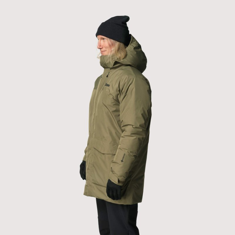 Auch wenn du im Winter eher nicht mit viel Grün rechnen kannst, überzeugt der Nikka Parka mit grüner, umweltfreundlicher und fortschrittlicher Materialtechnologie. Er kommt mit der nachhaltigsten Gore-Tex Membran, die aus expandiertem Polyethylen (ePe) besteht. Diese junge Membrantechnologie kommt ohne PFC aus und hat damit einen geringeren ökologischen Fußabdruck. Gleichzeitig bringt sie die gewohnt hervorragenden Eigenschaften einer Gore-Tex Membran mit: Sie ist komplett winddicht, wasserdicht und atmungsaktiv. Damit trägt der Nikka Parka zu einem ausgewogenen, trockenen Körperklima bei. Zudem ist auch die Imprägnierung der Jacke PFC-frei.