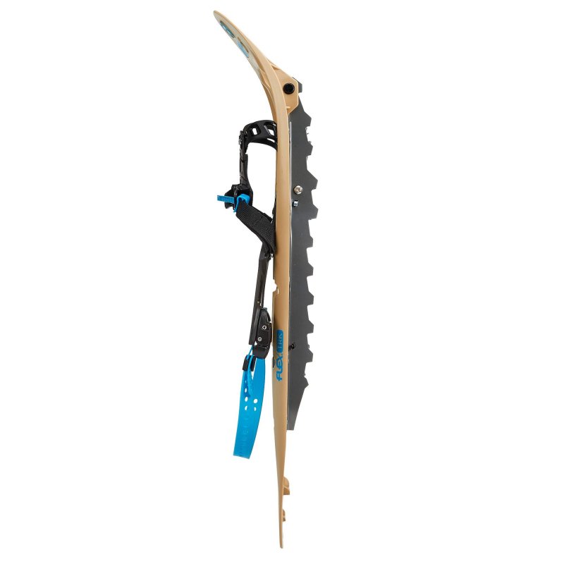 „Flex“ steht für den hinteren flexiblen Teil des Schneeschuhs. Dieser ermöglicht dir eine ergonomischere Abrollbewegung des Fußes und dämpft Stöße ab, wenn sich beispielsweise mal ein Stein unter dem Schnee verbirgt.