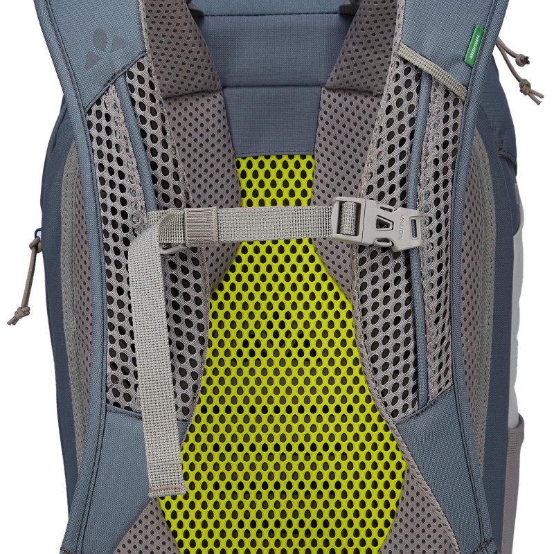Im Agile 20 kommt Vaudes Vent Comfort Tragesystem zum Einsatz. Der Kontaktrücken ist damit nicht nur weich gepolstert, er verfügt auch über einen großen Ventilationskanal. Dadurch bleibt dein Rücken beim Wandern und Biken immer gut belüftet. Die Schultergurte sind perforiert und sorgen so für zusätzlichen Klimakomfort. Für mehr Packstabilität wurde der Rücken zusätzlich verstärkt, sodass die Last sich auch bei gefülltem Hauptfach gut verteilt.