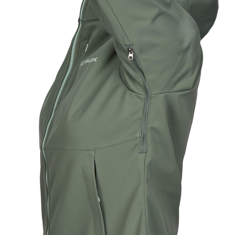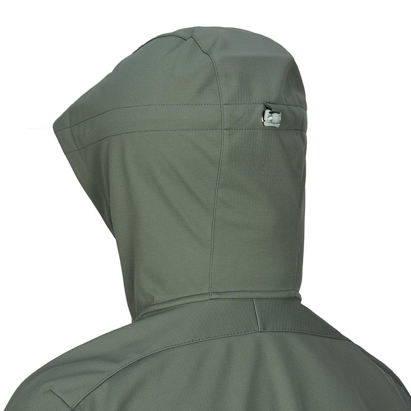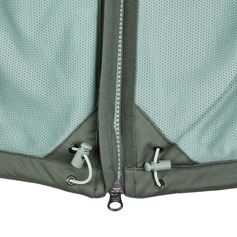 Damit du die Softshelljacke deinen Bedürfnissen anpassen kannst, sind Kapuze und Saum mit einem Schnürzug ausgestattet. Die Ärmel sind vorgeformt und lassen sich mithilfe von Klettverschlüssen individuell einstellen. Der unterlegte 2-Wege-Reißverschluss macht es kaltem Wind schwer hereinzukommen, erleichter dir allerdings den Zugang zu deinen Hosentaschen.