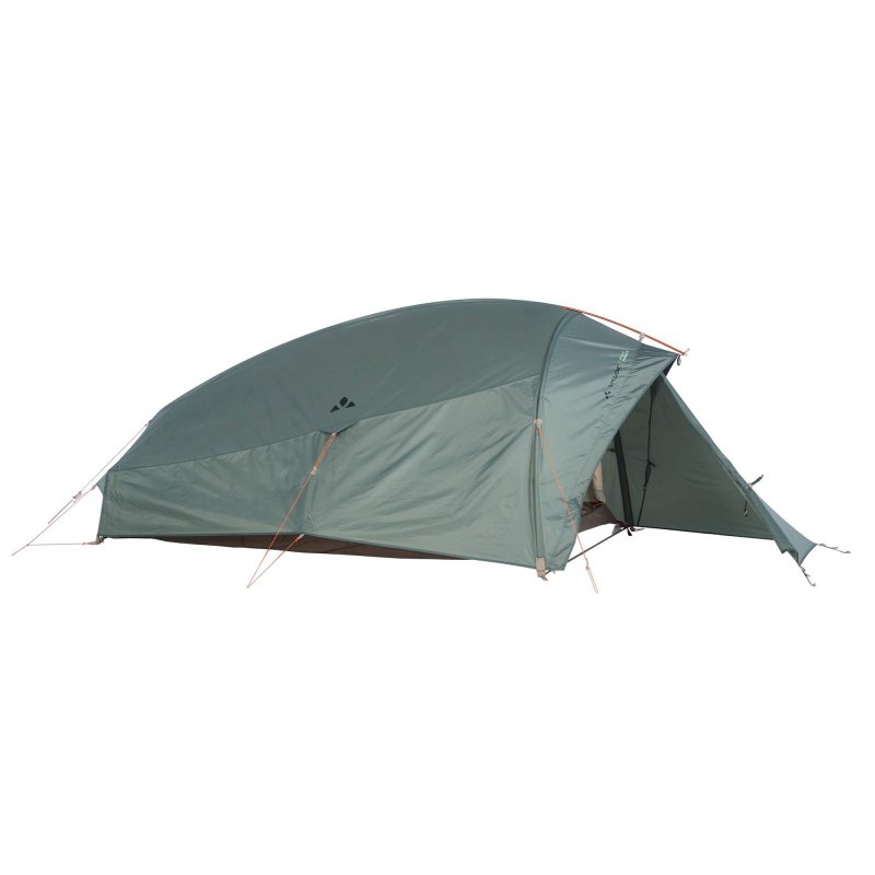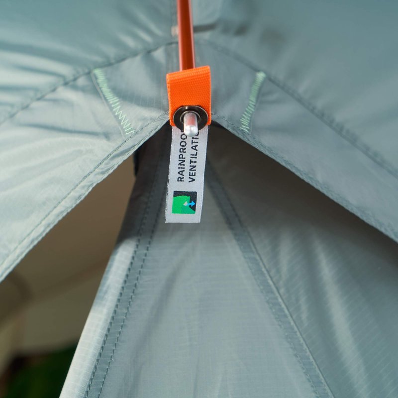Die Kuppelkonstruktion wiegt rund 2500 Gramm und ist damit leicht genug, um sie auf Wanderungen und anderen Outdoor-Aktivitäten mitzunehmen. Als Trägerkonstruktion kommen zwei hochwertige, 8,7 mm dicke Aluminiumgestänge des Marktführers DAC zum Einsatz. Zusammen mit sieben Zeltleinen und vier umlaufenden Abspannpunkten wird das Zelt sicher im Boden verankert. So musst du dir auch bei kräftigem Wind keine Sorgen um die Haltbarkeit machen.