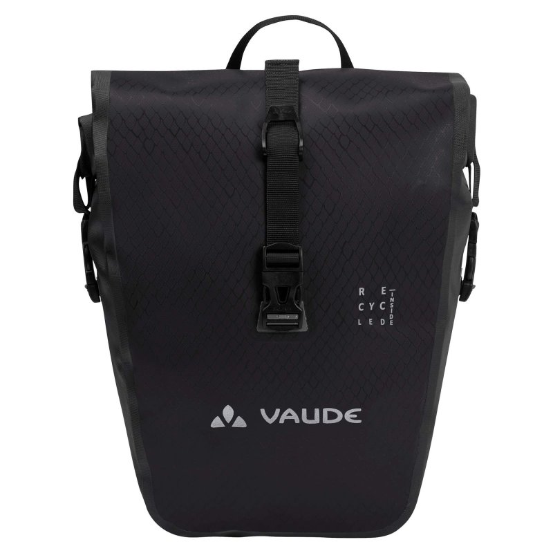 Auch das QMR 2.0 Eco System, also die Haken, mit denen du die Aqua Front (Rec) an deinem Gepäckträger befestigst, sind überwiegend aus recyceltem Polyamid gefertigt. Die Beschichtung des recycelten Hauptmaterials kommt ohne PVC aus und ist aus PU. All das demonstriert: Vaude geht es in Sachen Nachhaltigkeit konsequent an.