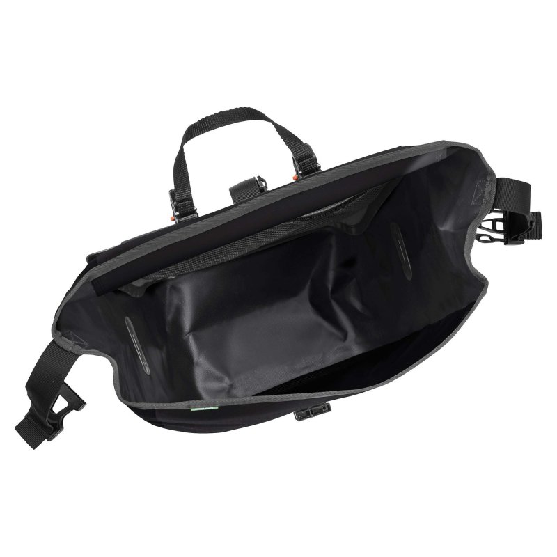 Dieses Paar wasserdichte Vorderradtaschen kannst Du mit dem Rollverschluss im Volumen variieren und absolut dicht verschließen. Durch die symmetrische Rückenplatte lässt sich jede der beiden Taschen links oder rechts montieren. Eine extra Innentasche schafft Übersicht.