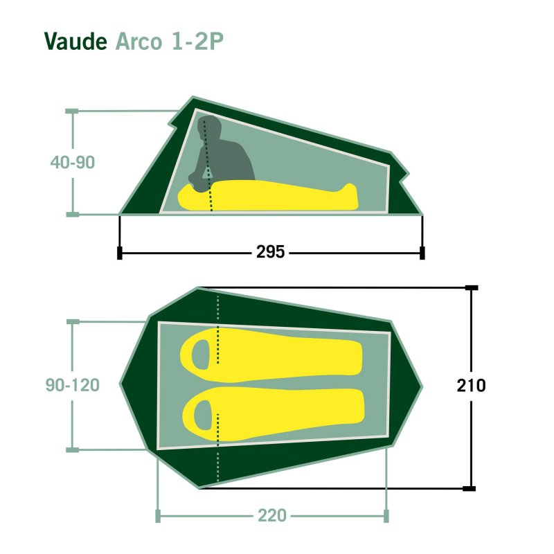 Das preiswerte Tunnelzelt besitzt ein kompaktes Packmaß und eignet sich ideal für Wanderungen und Radreisen. Es wird mithilfe von zwei Gestängebögen aufgebaut, die sowohl das Außen- als auch das Innenzelt gleichzeitig aufstellen. Dies erleichtert den Aufbau auch bei Regen, da das Innenzelt trocken bleibt. Da das Arco 1-2P im Fußbereich stark abfällt, bietet es weniger Windangriffsfläche, wenn diese Seite in den Wind gestellt wird.