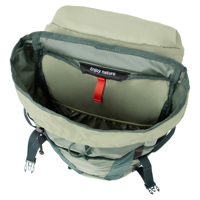Der Brenta 24 hält genau die passenden Fächer für Tageswanderungen bereit. Das große Hauptfach bietet genug Stauraum für Großvolumiges wie eine Fleecejacke oder Verpflegung. Für kleinere Ausrüstung wie die Stirnlampe oder ein kleines Erste-Hilfe-Set hält der Deckel außen und innen jeweils ein Fach parat. Das RV-Fach auf der rechten Hüftflosse eignet sich perfekt für Energieriegel und andere Kleinigkeiten, die schnell zur Hand sein sollen. Auch die Sonnenbrille ist dank eigener Halterung am Schultergurt immer nur einen Handgriff entfernt. Und deine Trekkingstöcke kannst du bequem auf der Rucksackfront fixieren. Für Dinge, die im Hauptfach keinen Platz mehr finden, gibt es an den Seiten und an der Front elastische Steckfächer – perfekt für Trinkflaschen und die nasse Regenjacke.