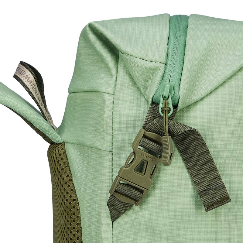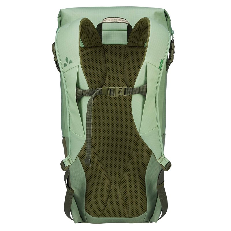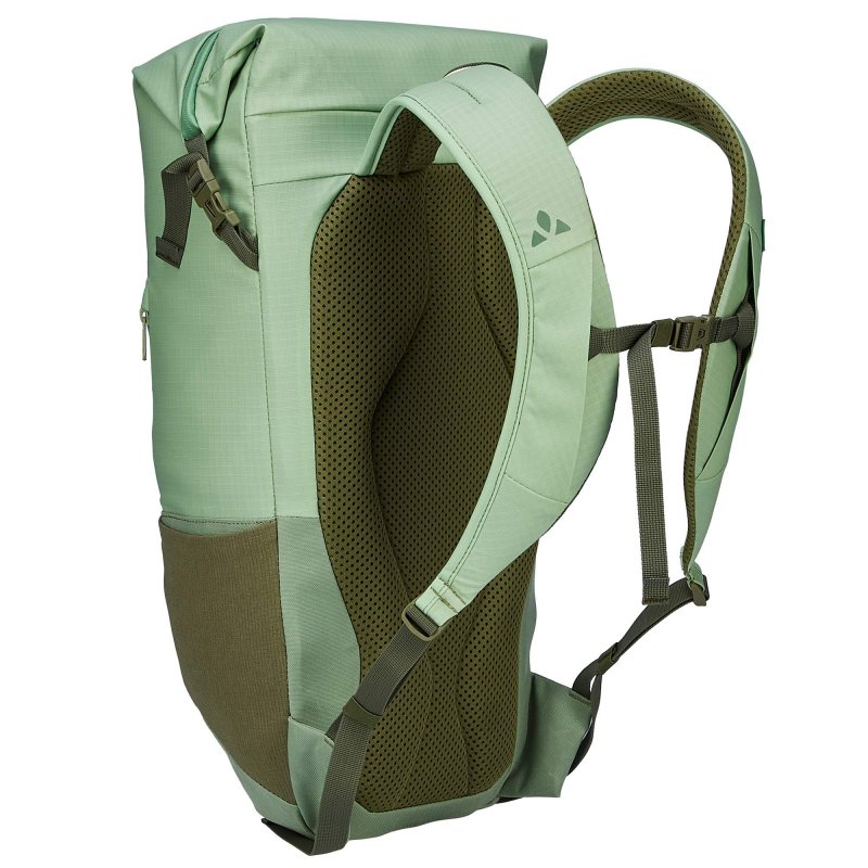 Auch wenn Vaude beim Design des Citygo 18 klar auf Minimalismus setzt: Am Tragekomfort wurde nicht gespart. Der Fahrradrucksack ist mit einem gepolsterten Kontaktrücken ausgestattet. Und dank des Ventilationskanals bleibt dein Rücken auch auf dem Fahrradsattel bestens belüftet. Geschlossen wird der Fahrradrucksack mit einem Rollverschluss mit wasserdichtem Reißverschluss.