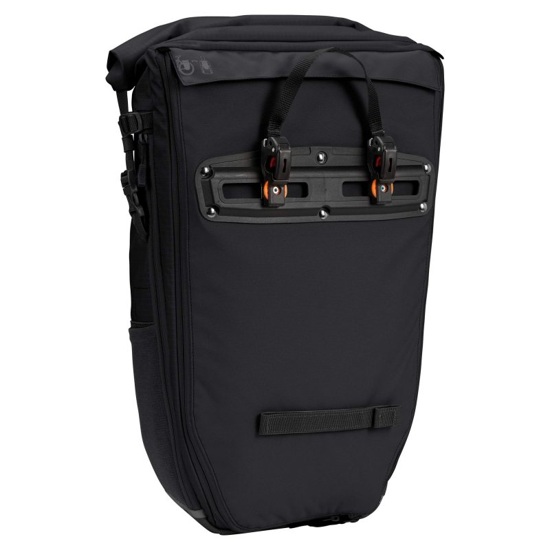 Die modulare Fahrradtasche lässt sich im Handumdrehen von der Radtasche zum Rucksack verwandeln. Dafür ist die Gepäckträgerhalterung schnell und sauber im Rückenfach verstaubar. Zum Vorschein kommt das Rucksacktragesystem, das dich die Radtasche bequem schultern lässt.