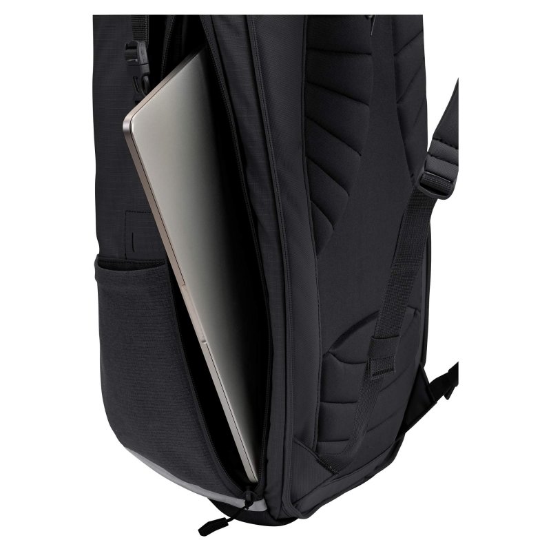 Das gepolsterte Notebookfach befindet sich an der Rückenplatte und ist von außen mit einem unscheinbaren Reißverschluss zugänglich. Im Hauptfach sorgen diverse Organizerfächer für Ordnung. Geldbörse, Schlüssel, Smartphone, Kopfhörer und Pulli lassen sich hier gut separieren und ordnen.