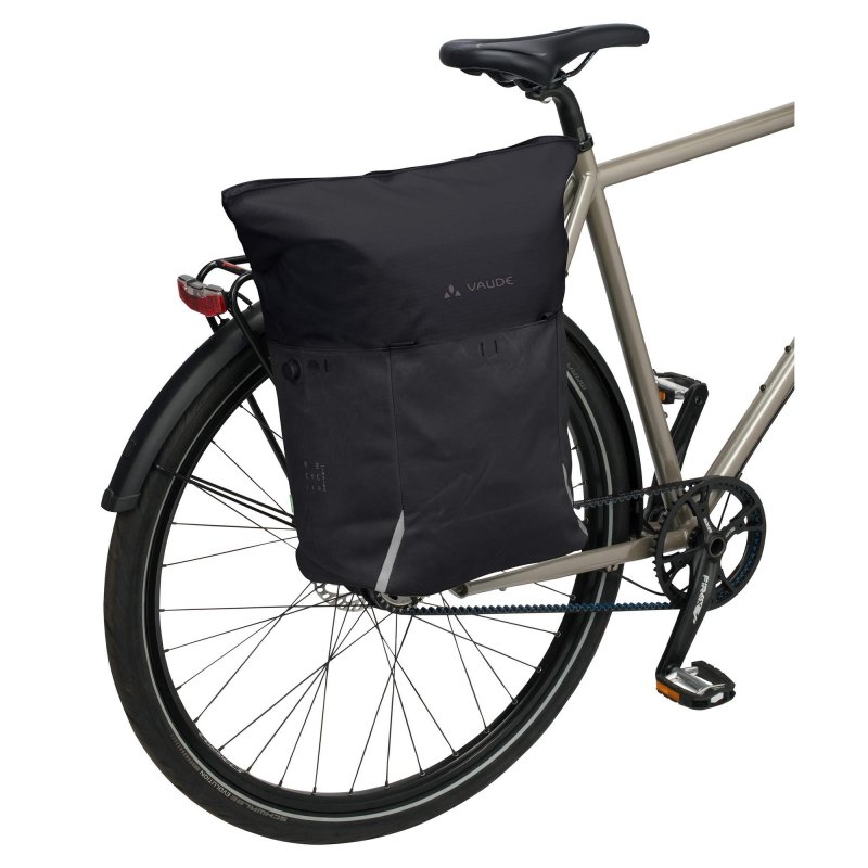 Nachhaltig ist die Cityshop Bike II auch: Die Fahrradtasche ist zu einem überwiegenden Anteil aus Recyclingmaterial gearbeitet, besitzt eine PU-Beschichtung und auf der Regenhülle eine Aufgrund ihrer sehr langen mittleren Verweilzeit in der Atmosphäre haben alle Perfluorcarbone, ähnlich wie die Fluorchlorkohlenwasserstoffe (FCKW), sehr hohe Treibhauspotentiale. Sie sind ebenso im menschlichen Blut nachweisbar. Darüber hinaus wurden sie inzwischen in entlegenen Gebieten wie der Arktis und der Antarktis gemessen und gelten als klimarelevant.">PFC-freie DWR. Die gesamte Radtasche ist wasserabweisend PU-beschichtet und hält leichten Regen ab. Bei starkem Regen kannst du die mitgelieferte Regenhülle überziehen, um den Inhalt sicher vor Wasser zu schützen. Mit dem separat erhältlichen Vaude Light Me Up Kit II bringst du die Cityshop Bike II zum Leuchten. Das erhöht die Sichtbarkeit im Straßenverkehr.