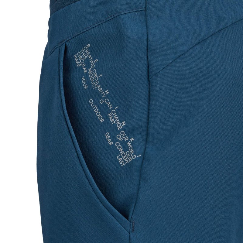 Die Wanderhose besteht zu 100% aus wiederverwertetem Polyester. Somit wurde nicht nur PET-Flaschen eine neue Aufgabe geschenkt, die Hose lässt sich nach ihrem Ableben auch ganz einfach wieder recyceln. Sie ist nämlich Teil der Vaude Rethink!-Reihe. Hierbei wird nicht nur auf die Verwendung eines einzigen Rohstoffes geachtet. Andere Teile lassen sich einfach abnehmen und effiziente Materialschnitte schonen Ressourcen. Hierdurch entsteht weniger Abfall, CO2 wird vermieden und die Recyclingfähigkeit wird verbessert. Dies sind nur einige Schritte des Vaude-Kreislaufkonzepts.