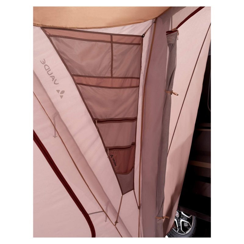 Zusätzlichen Wohn- und Stauraum - das bietet der Drive Pavillon. Das geräumige und multifunktionelle Vorzelt kann einfach an einen Kastenwagen oder Transporter der Bauhöhen H1 bis H3 angebaut werden. In dem Vorzelt können zum Beispiel Campingmöbel aufgebaut werden, sodass man auch bei Regenwetter nicht beengt im Auto sitzen muss, sondern gemütlich draußen kochen, essen oder entspannen kann. Aber auch als Lagerraum für alle möglichen Campingutensilien ist der Drive Pavillon perfekt. Praktisch ist auch, dass das Zelt von selbst steht und in Windeseile vom Auto gelöst oder wieder festgemacht werden kann. So können Camper ihren Van nutzen, ohne es jedes Mal auf- und abbauen zu müssen. Das Vorzelt bietet zuverlässigen Wetter- und Sonnenschutz. Gleichzeitig kann es zu allen Seiten geöffnet und so gut gelüftet werden. Mesheinsätze in den Fenstern schützen dabei vor Mücken. Damit nicht genug - der Drive Pavillon punktet mit weiteren praktischen Features: So gibt es an der Decke des Vorzelts eine Wäscheleine, viele Aufhängepunkte für Lampen oder Ähnliches und an den Seiten zum Fahrzeugeingang jeweils einen Organizer, der auch entfernt werden kann. Optional kann man das Zelt auch mit einem Innenzelt oder einer Bodenwanne erweitern, welche als Zubehör separat erhältlich sind.