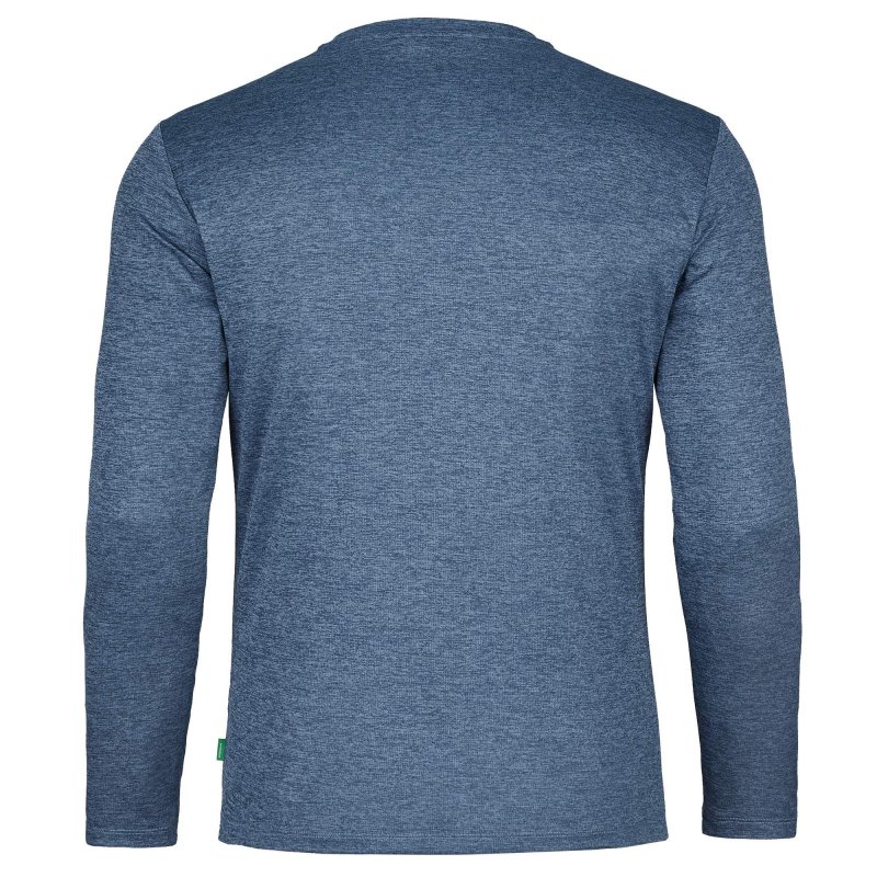 Das aus recyceltem Polyester gefertigte Langarmshirt verfügt über ein gutes Feuchtigkeitsmanagement. Das Material trocknet zudem recht schnell wieder. Obwohl das Shirt aus Kunstfaser besteht, liegt es wunderbar weich auf der Haut und vermittelt ein angenehmes Tragegefühl. Vervollständigt wird das melierte Longsleeve durch den bewährten Rundhalsausschnitt.