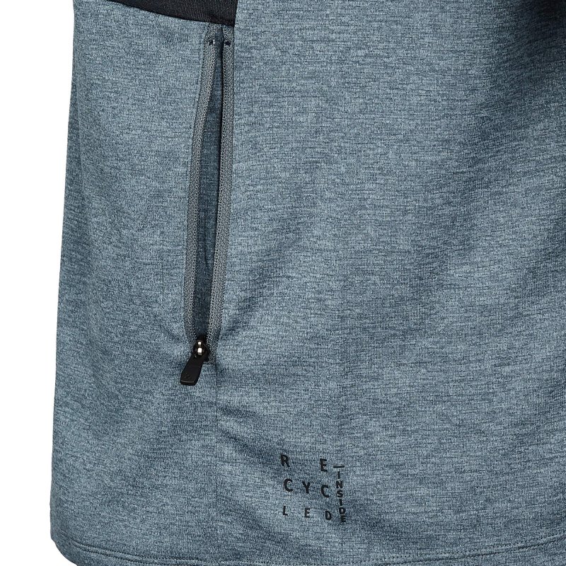 Die Ärmel, die Zonen unter den Ärmeln sowie der obere Rücken sind aus einem besonders dünnen Material gefertigt. Dieses besteht aus einem feinen Polyester-Woll-Mix, der für eine gute Klimatisierung sorgt. Außerdem wirkt der Woll-Anteil geruchshemmend.
