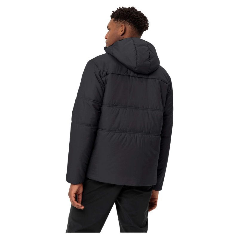 Teilelastische Bündchen an Ärmeln und Saum und ein verstellbarer Saumabschluss halten Wind und Kälte ab. Die Kapuze und der hohe Kragen der Isolationsjacke bieten bei stürmischem, kaltem Herbst- und Winterwetter zusätzlichen Schutz. Praktisch sind auch die beiden Fronttaschen, in denen ein Smartphone verstaut werden kann oder die Hände vor eisiger Kälte Schutz finden. Damit die Jacke auch in jedem Gepäck - sei es der Wanderrucksack oder die Arbeitstasche - Platz findet, kann sie klein in ihre Innentasche verstaut werden.