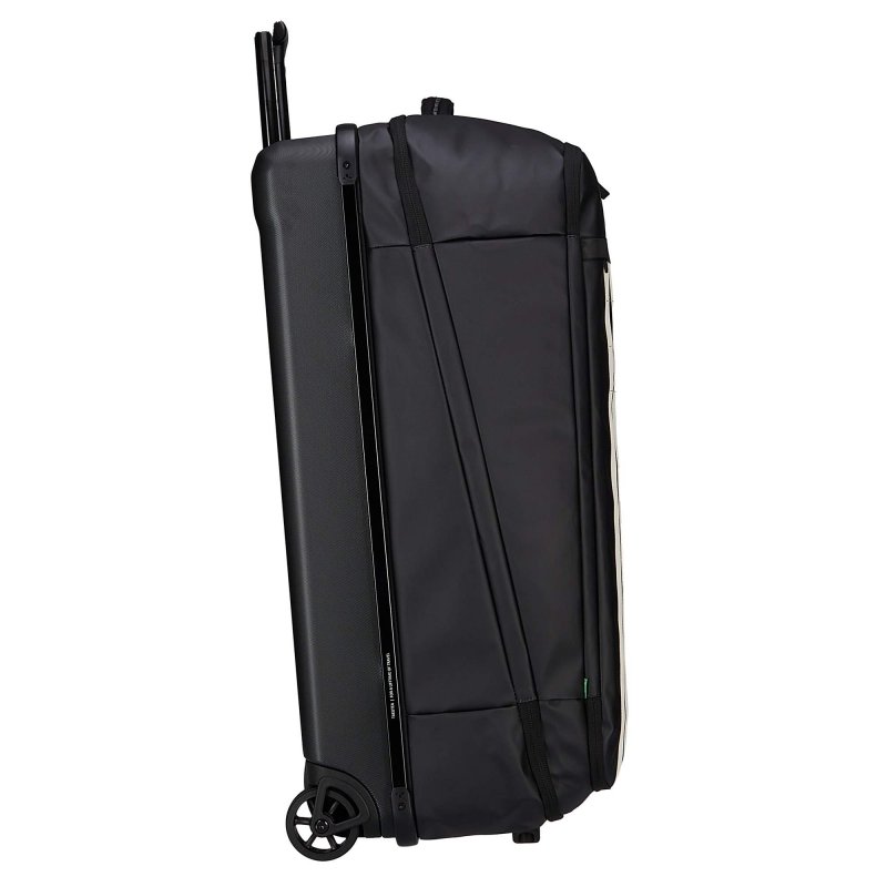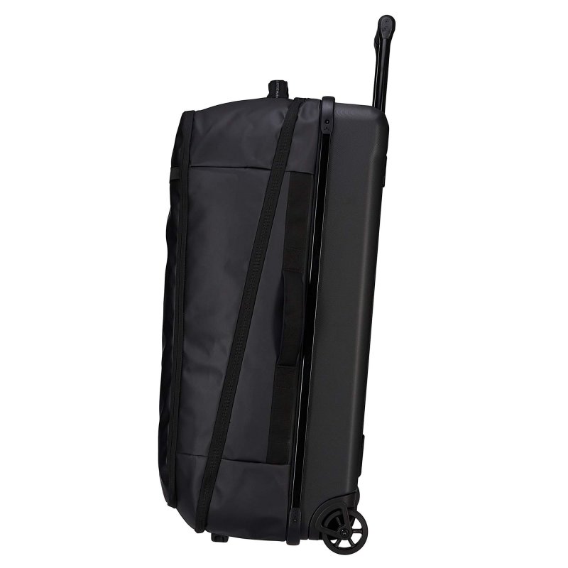 Rollkoffer aus Planenmaterial mit robuster Hartschale auf der Rückseite