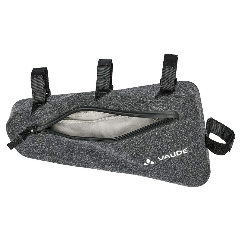 Die wasserdichte Rahmentasche befestigst du einfach am Oberrohr. Zugriff auf deine Ausrüstung hast du über den seitlichen, wasserdichten Reißverschluss. Die Trailframe II wird mit drei Klettgurten fest am Rahmen verzurrt. Dein Gepäck ist im Inneren gut vor Feuchtigkeit und umherfliegendem Schlamm geschützt.