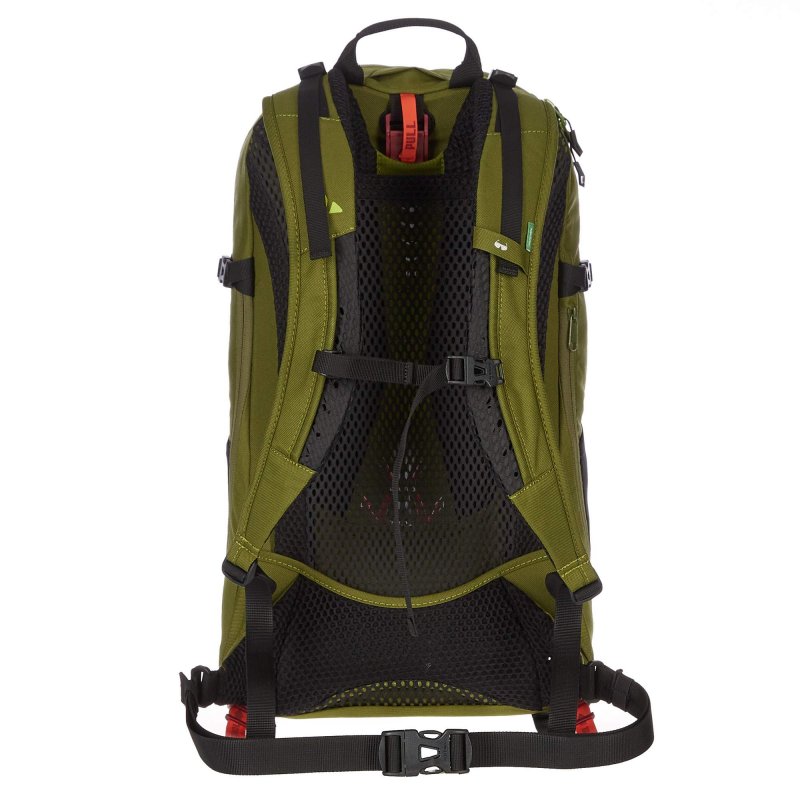 Möglich macht es das belüftete Tragesystem mit regulierbarer Netzspannung (AeroFlex). Über die roten Bänder unter am Rücken kannst du Stärke der Spannung und somit die Wölbung am Rücken noch etwas feinjustieren. Je nach Tourenart kannst du den Wizard 18+4 körpernaher oder körperferner tragen. Die vorgeformten ErgoShape-Schultergurte sind belüftet und liegen gut an. Ein schlanker Bauchgurt sorgt für einen festen Sitz.