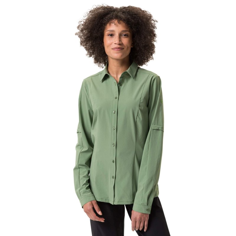 Durch ihr schnelltrocknendes und pflegeleichtes Gewebe ist sie besonders für mehrtägige Reisen gut geeignet. Gegen Sonne ist sie mit einem UV-Schutz von 50+ ausgestattet. Dank des umschlagbaren Kragens ist auch deine Nacken von den Strahlen abgeschirmt. Die Bluse ist mit einem leicht taillierten Schnitt versehen. Sie lässt sich sowohl mit langen sowie kurzen Ärmel tragen. Hierfür stehen ein verdeckter Knopf und eine Lasche zum Fixieren bereit.