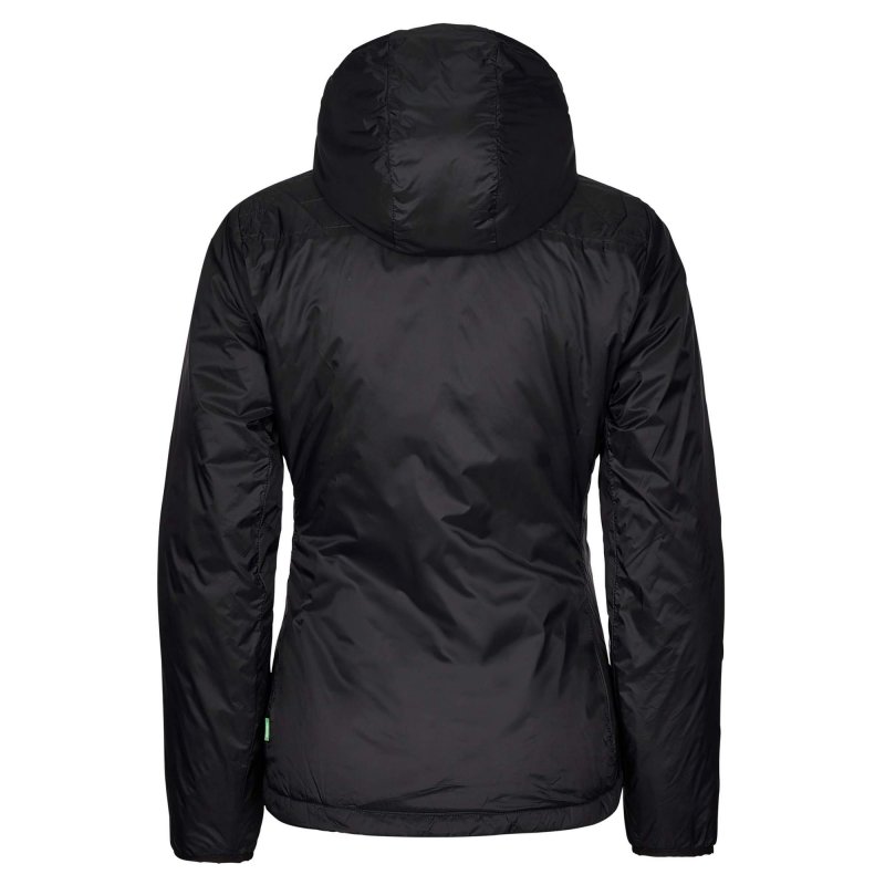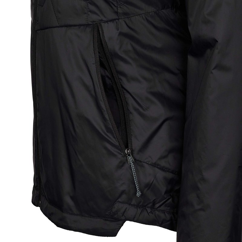 Zur Ausstattung gehören eine teilelastische Kapuze und ein unterlegter Front-Reißverschluss, die Schutz vor kaltem Wind bieten. Hierbei unterstützt auch der Schnürzug im Saum, welcher sich einhändig bedienen lässt. Die beiden RV-Taschen sind höher angesetzt, sodass du sie mit angelegtem Klettergurt erreichen kannst. Die Isolationsjacke lässt sich sogar in einer der beiden Taschen verstauen und ist somit bestens für schmales Gepäck geeignet.