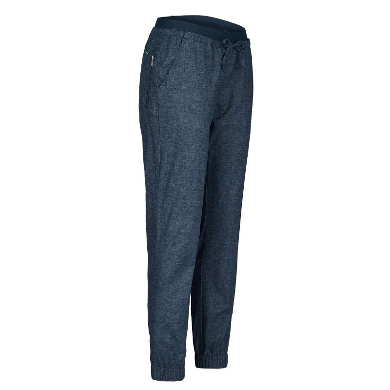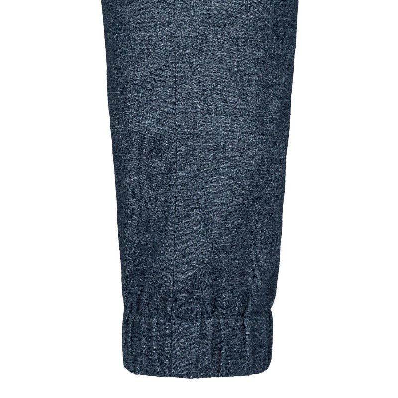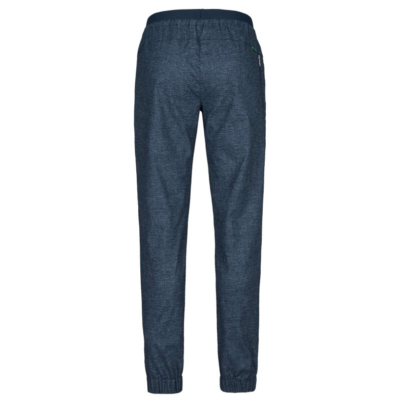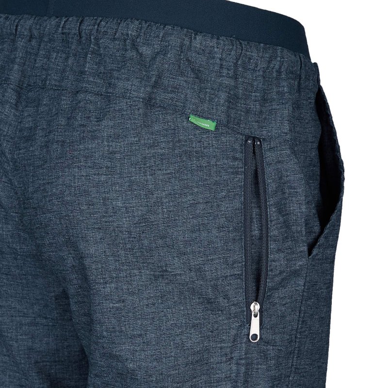 Die Hose ist mit genügsamem Hanf ausgestattet. Dieser kommt beim Anbau mit wenig Wasser aus und auf Pestizide und Düngemittel kann verzichtet werden. Er verleiht dem Gewebe seine Robustheit. Das recycelte Polyester sorgt für einen guten Feuchtigkeitstransport und eine verkürzte Trocknungsdauer. Durch den Hauch an Elasthan wird die Hose noch komfortabler.