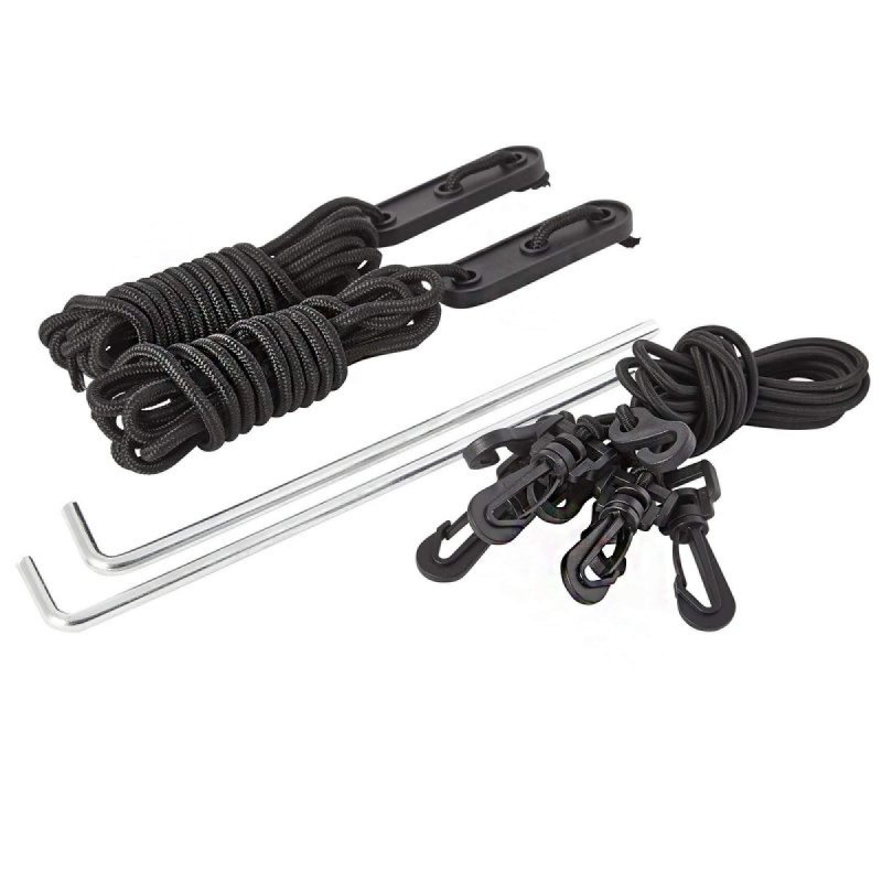 Praktisch sind vor allem die beiden geräumig ausfallenden Schuhtaschen. Wen auch schlechtes Wetter nicht vom "Draußenschlafen" abhalten kann, kommt so trockenen und sauberen Fußes ins Innere des tollen Zelts. Alle Belüftungsöffnungen sind zudem mit feinmaschigem Moskito-Gaze versehen. So kannst du lästige, blutsaugende Plagegeister draußen halten und bist im Inneren in Sicherheit. Eine hochwertige Teleskopleiter mit einer Traglast von stolzen 150 kg und einer Länge bis 2,3 m ist genauso mit von der Partie wie eine praktische Regenhülle, Montagehalterungen und einer Tasche für allerhand Zubehör.