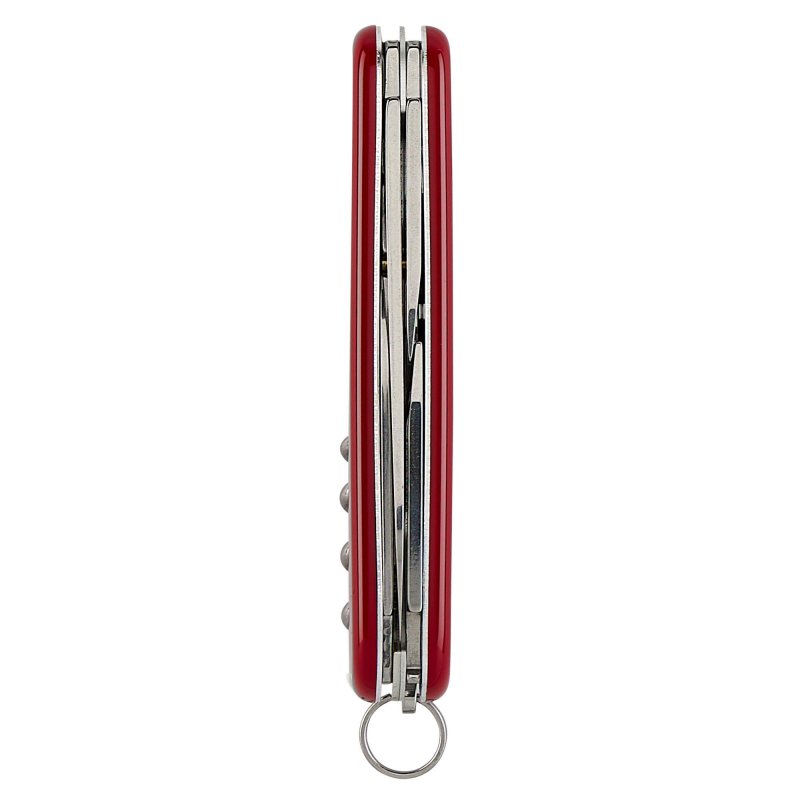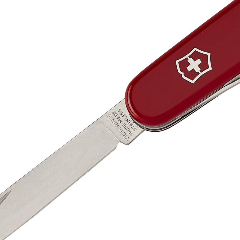 Alle Werkzeugteile des Messers bestehen aus rostfreiem Inox-Stahl (Werksbezeichnung 1.4110 – in den USA auch bekannt als 440A) mit einer Härte von 56 HRC. Das Material zeichnet sich durch eine mittlere Schnitthaltigkeit aus und lässt sich auch von Anfängern leicht nachschärfen. Mit etwas Übung gelingt es, die Messerklinge auf Rasiermesserschärfe zu schleifen. Victorinox setzt seit den Anfängen auf diesen bewährten Werkzeugstahl.