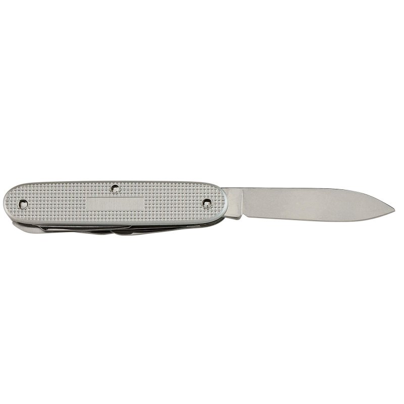 Alle Werkzeugteile des Messers bestehen aus rostfreiem Inox-Stahl (Werksbezeichnung 1.4110 - in den USA auch bekannt als 440A) mit einer Härte von 56 HRC. Es zeichnet sich durch eine mittlere Schnitthaltigkeit aus und kann auch von Anfängern leicht nachgeschärft werden. Mit etwas Übung gelingt es die Messerklinge auf Rasiermesserschärfe zu schleifen. Victorinox setzt bereits seit den Anfängen auf diesen bewährten Werkzeugstahl.